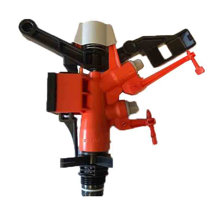 آبپاش تنظیمی پلیمری دارای دو نازل پلاستیکی و ورودی نر 3/4 اینچ است. این آبپاش از نوع ضربه ای که جنس پلاستیکی مقاوم دارد و فنر های استفاده شده در آن استنلس استیل هستند که در مقابل زنگ زدگی مقاوم هستند.
