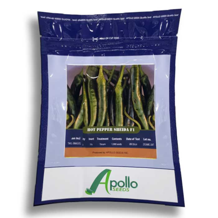 بذر فلفل تند قلمی شیدا آپولو سیدز رنگ دارای طعمی بسیار تند بوده و همانند فلفل سبز یا تمامی صیفی جات کاشت ساده ای را دارد و قابل کاشت در گلدان و نگه داری در بالکن یا پشت پنجره های جنوبی می باشد.
