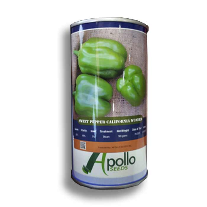 بذر فلفل دلمه ای کالیفرنیا واندر آپولو سیدز شیرین بوده و گوشتی ضخیم دارد و معمولاً چهار لوب می باشد، ارتفاع بوته های آن حدوداً ۵۰ تا۶۰ سانتی متر بوده و به راحتی قابل کاشت و نگه داری در گلدان  می باشد. فلفل دلمه ای را به راحتی میتوان در خانه و در پشت پنجره آفتاب گیر یا باغچه نگه داری نمود (در زیر آموزش کاشت را مطالعه کنید) بعد از گذشت ۷۵ روز از زمان کاشت باردهی محصول آغاز می شود و تا قبل از یخ بندان ادامه دارد.