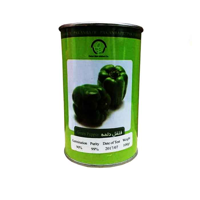 قوطی ۱۰۰ گرمی بذر فلفل دلمه پاکان بذر اصفهان فلفل دلمهای(bell pepper) نوعی فلفل شیرین است از خانواده سیبزمینیان که به رنگهای قرمز، زرد، سبز و نارنجی یافت میشود. از ویژگیهای آن این است که به تندی دیگر گونههای فلفل نیست. به همین دلیل در انگلستان و ایرلند «فلفل شیرین» نیز نامیده میشود. این گیاه بومی مکزیک، آمریکای مرکزی و شمال آمریکای جنوبی است. دانهٔ این گیاه در سال ۱۴۹۳ به اسپانیا حمل شد و از آنجا به سراسر اروپا، آسیا و آفریقا گسترش یافت. امروزه چین و پس از آن مکزیک و اندونزی بزرگترین تولیدکنندهٔ فلفل در جهان هستند.